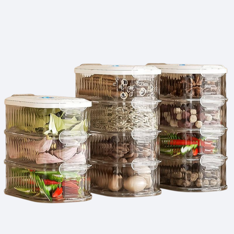 투명 디자인으로 내용물 확인이 용이함. 밀봉 기능으로 신선도 유지. 다양한 식품 보관 가능. 공간 절약형 주방 수납함.