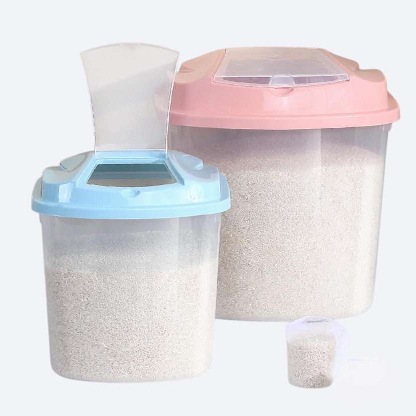 쌀과 식품을 신선하게 보관하는 투명 쌀통, 방충 및 방습 기능, 용량 확인이 편리, 주방 정리 효율적, 위생적인 밀폐 저장 가능
